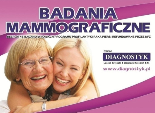 Bezpłatne badania mammograficzne w ramach programu profilaktyki raka piersi refundowanego przez NFZ. Badanie przeznaczone jest dla kobiet w wieku 45–74