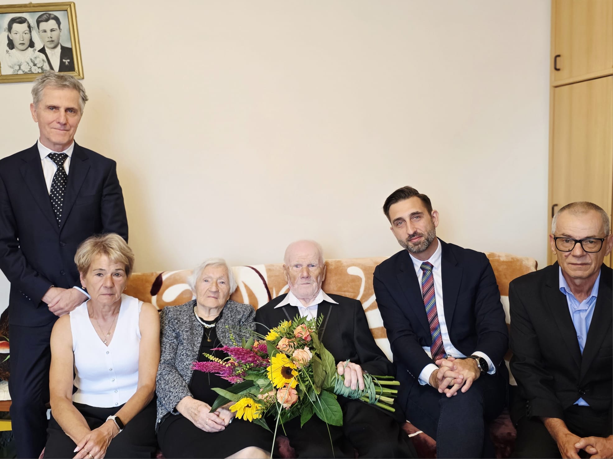 Jubilata odwiedzili Burmistrz Małomic Paweł Gorzków, Sekretarz Gminy Pan Wincenty Chłostowski oraz przedstawiciel Ośrodka Pomocy Społecznej Pani Sylwia Zielińska. Podczas spotkania złożono najserdeczniejsze życzenia oraz przekazano listy gratulacyjne od Premiera RP Pana Donalda Tuska i Wojewody Lubuskiego Pana Marka Cebuli.