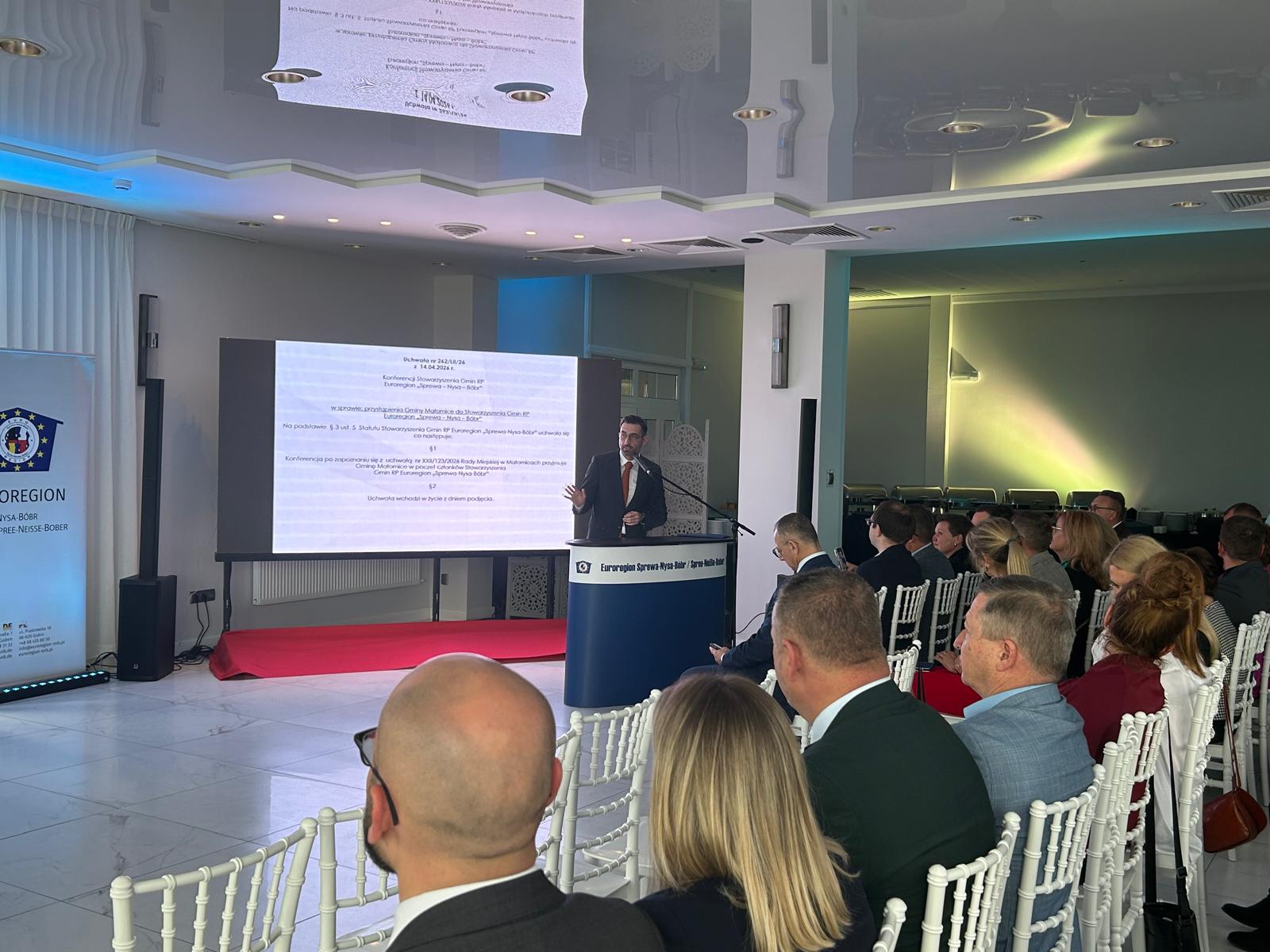 Wczoraj, 14.04.2026 r., podczas konferencji Stowarzyszenia Gmin RP Euroregion „Sprewa–Nysa–Bóbr”, podjęto uchwałę w sprawie przystąpienia Gminy Małomice do Euroregionu. W wydarzeniu uczestniczył Burmistrz Małomic, Paweł Gorzków.