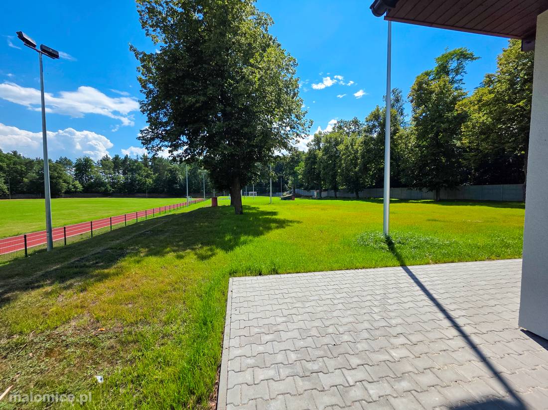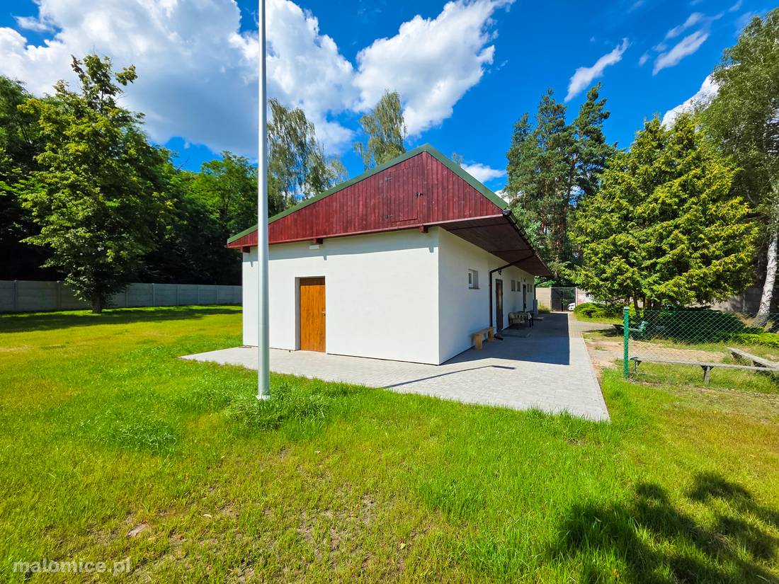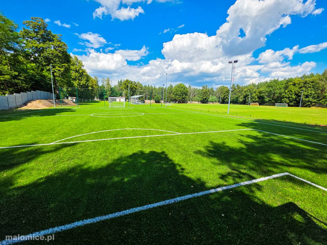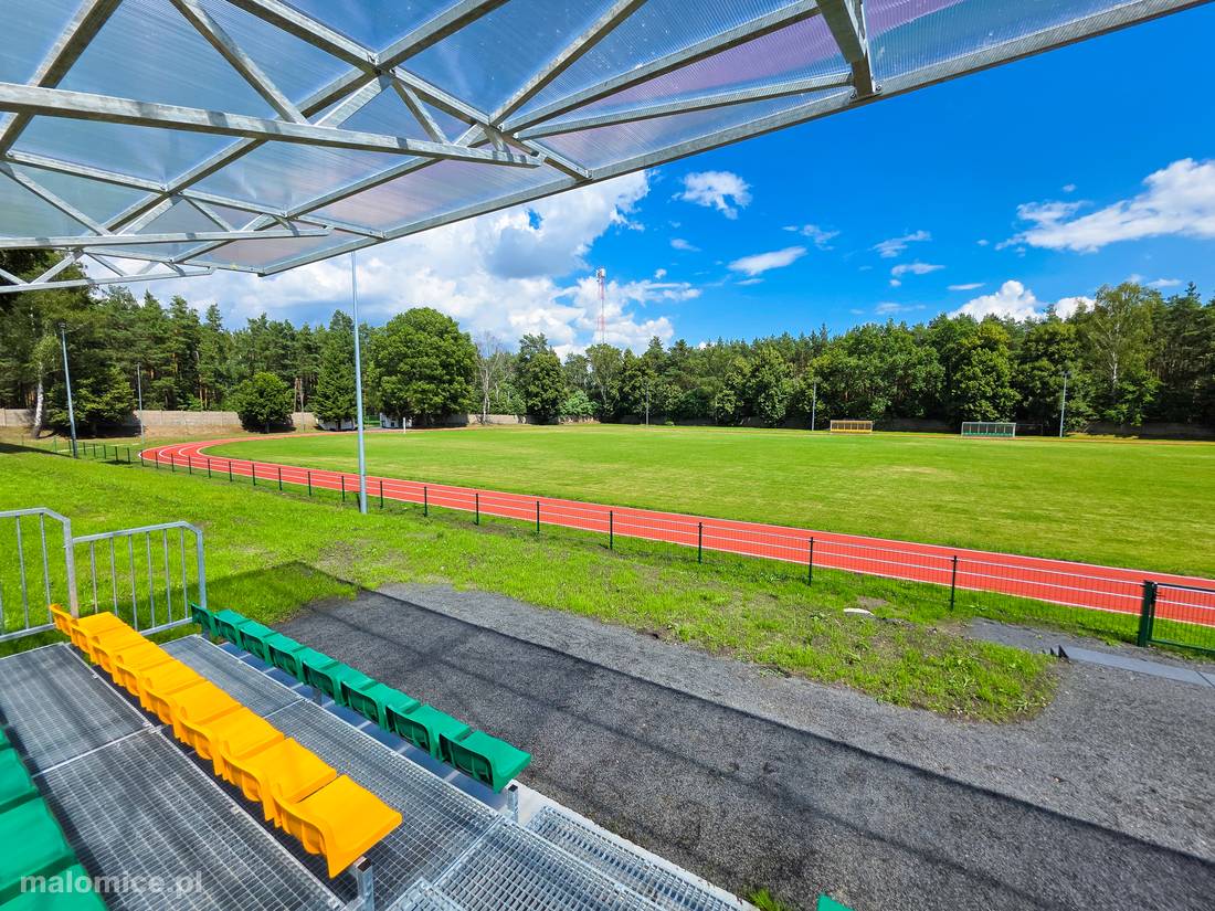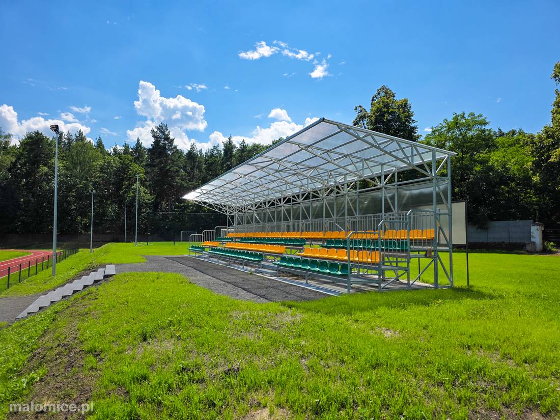 Wokół istniejącego boiska do piłki nożnej wykonano 3 torową bieżnię lekkoatletyczną o długości 390 m. Na skarpie po zachodniej stronie boiska, wykonano zadaszone trybuny dla kibiców W południowo zachodniej części terenu wykonano boisko treningowe do piłki nożnej dla dzieci, ze sztuczną nawierzchnią. Rozbudowano budynek szatni sportowej. o węzeł sanitarny stanowiący toalety ogólnodostępne, w skład których wchodzi przedsionek, wc oraz umywalnia męska, wc dla osób z niepełnosprawnych stanowiąca również wc damskie. Zainstalowano nowe oświetlenie terenu wokół boiska oraz bieżni lekkoatletycznej.